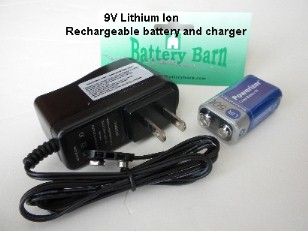 This is a designated charger for 9V Lithium Ion battery. It can charge Lithium Ion 9 V battery only, one at a time. It has 300 mAh out put per hour, 110 V to 240V input, it will only need 90 minutes to charge a 400 mAh 9V Lithium Ion battery. There is NO battery come with the charger. The charger's size is 3" L x 2&1/2" W x 1&1/4" H. Priced at $11.95 only . This charger is in stock.