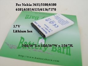 The battery for your NOKIA 2651/5100/6100/6101/6102/6125/6136/7270 phones.