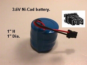 Nickel Cadmium battery (Ni-Cad), 3.6V, 280 mah. With 3 coin type battery cells stack on top of each other (Like an oil barrel), two wires lead to a black plug. Dimensions - 1" tall x 1" Dia. The battery is brought to you by Battery Barn. It is fully compatible with your phone, you will have one year's WARRANTY from Battery Barn. Priced at $9.95.