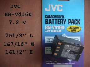 Battery Barn Stock Number : Original JVC batteries--BN-V416U, or Vidpro Inc. made AC-V416U,AC-V428U for your JVC. All these batteries are sharing the same base as BN-V408U, but the thickness are 2 or 3 times taller than BN-V408U, the running time is also 2 or 3 times longer than BN-V408U. Your original charger will charge all of them.