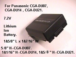 800 mAh , Made by Vidpro Inc. This is the same size battery as Panasonic CGA-DU07 battery (5/8" on the height.). with 800 mAh capacity, Priced at $15.95 , Your original charger will charge this battery.