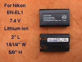 VidPro Corp. made Lithium-ion battery, 7.4V , 800 mah. Dimensions at 2" L x 1 & 1/4" W x 5/8" H. You will have one year's