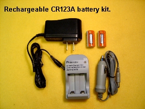 This is a 3 V rechargeable Lithium Ion battery kit, it comes with one twin charger ,it can charge two RCR123A batteries at a time. The charger will work under 110V to 240V , It comes with a 12V car lighter adapter. Plus two rechargeable 650 mAh RCR-123A Lithium Ion batteries . It will need 3 hours to charge two batteries. The product is brought to you by Battery Barn. Priced at $24.95 only. You will have one year's