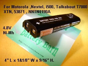 This battery works for Motorola Talkabout series and XTN series ,Nextel NTN8971B. i500 , i550, i700 phones. Battery number- 53871 , NNTN4190A .KEBT-082 , replacement battery.