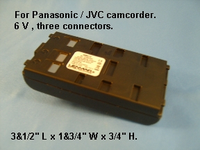 6 V ,3000 mAh, Nickel Metal Hydride battery, The battery is made by NABC Inc., (Height--1 & 1/2"), Priced at $34.95, S&H included.