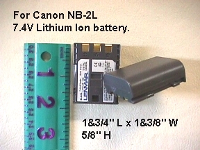 An external charger, Made by Vidpro Inc. This is a compact size charger, the charger base is only 3&1/4" L x 1&3/4" W x 1&1/2" H. With a flip in type AC plug for 100V to 240V world wild use, and a 12V car lighter power adapter. One LED indicator for the charging status. 650 mAh out put. It will only need 70 minutes to charge a NB-2L battery. Priced at $25.95.