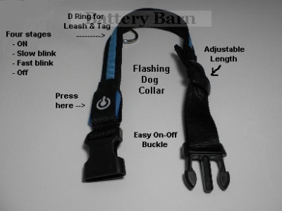 Flash dog collar, flashing dog collar, LED dog collar, L.E.D. dog collar,Illuminated dog collar.Glowing dog collar, flash collar,flashing collar, flashcollar.com