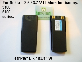 We have a replacement battery available for your Nokia 3280, 3285,5100 and 6100 series phones. The batteries are brought to you by Battery Barn. (NOT THE ORIGINAL NOKIA PRODUCTS.) Your original charger will charge these batteries. YOU WILL HAVE ONE YEAR'S WARRANTY FROM BATTERY BARN.