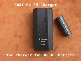 The FUJI BC-80 charger for your battery, It will charge one battery at a time,(NP-80 or NP-100.) Comes with build in Auto shut-off device. Works for 110V to 230V. Priced at $79.95, S&H are included. IN STOCK.