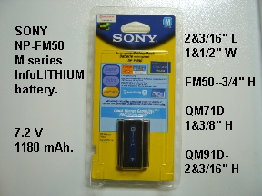 2760 mAh capacity. This battery is twice thicker than NP-FM30 / 50, it shares the same base as NP-FM30 / 50, Your original charger will charge this battery, But some camera models may not use it, (Because of the height of the battery.) Please check your instruction before you place the order. SONY just up graded this battery number to NP-QM71D, It has higher capacity than NP-FM70, It says "SuperQuickCharger Capability", Also it has a "Power meter" on the battery. NP-QM71D is the battery we have in stock. Price at $79.95 S&H are included.