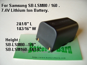 from Battery Barn or Vidpro Inc. Your original Samsung charger and camcorder will work with this battery just fine. SB-LSM160 is the battery to replace SB-Ls80, or SB-LSM330 batteries. They all are sharing the same base.