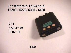 This battery works for Motorola Talkabout , radio model number T6200 , T6220, T6260. T6300, T6320, T6400 .... and many many more new models.