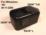 Ni-Mh battery, 18 V, with extended power, Capacity at 2400 mAh. The battery is brought to you by Battery Barn. It works for Milwaukee 48-11-2200 , 48-11-2230 batteries. 1108-20,1108-21,3108-21,5364-20,5364-21,6516-20/21/22/23 tools.